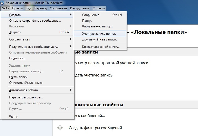 1. Запустите почтовый клиент Mozilla Thunderbird версии 5.0 и выше.